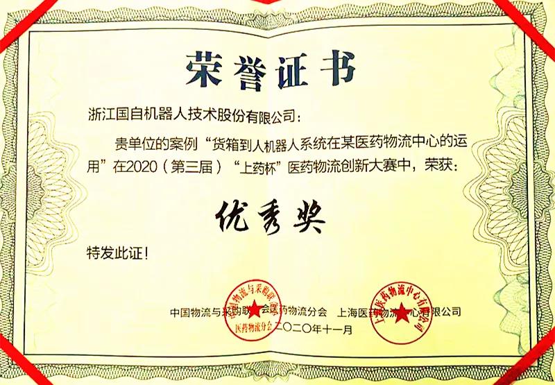 2020年11月20日,2020(第三届)“上药杯”全国医药物流创新大赛在第七届中国医药物流行业年会上隆重揭晓并举行了颁奖仪式,国自机器人凭借“货箱到人机器人系统在某医药物流中心的应用”案例荣获本次大赛优秀奖。