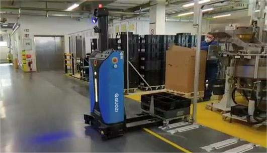 工厂内路线复杂,物流转运强度大,人、人工叉车、智能AGV三者混行,安全防护难度大。在该项目中使用的SLIM堆垛机器人经过CE认证,满足欧标安全标准,实现混合交通环境下的安全运行,助力工厂运行与管理提速提效。