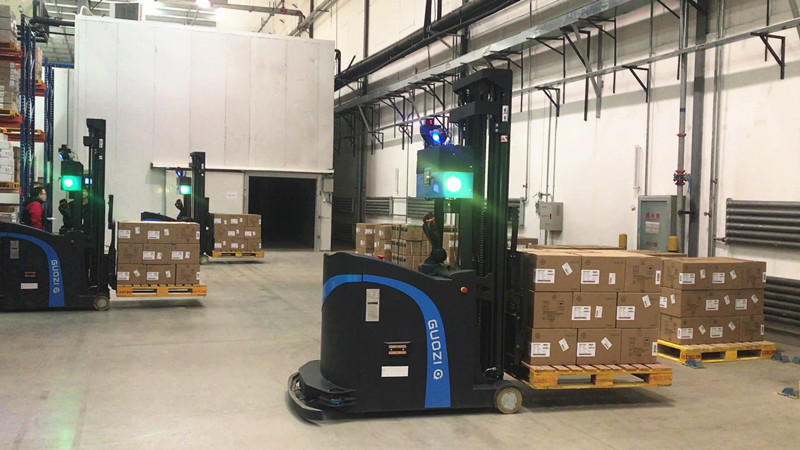 国自为东北地区最大的某医药集团提供智能搬运解决方案,使用多台高位前移叉式AGV对药品供销配运环节中的验收、存储、分拣、配送等作业过程优化,采用“高位安全”和“自动标定”技术对超过6米的货架完成货物存取作业,自动识别货物与货位之间的偏差,保证平稳出入库,有效避免安全事故,大幅提高药品库房物流自动化水平。