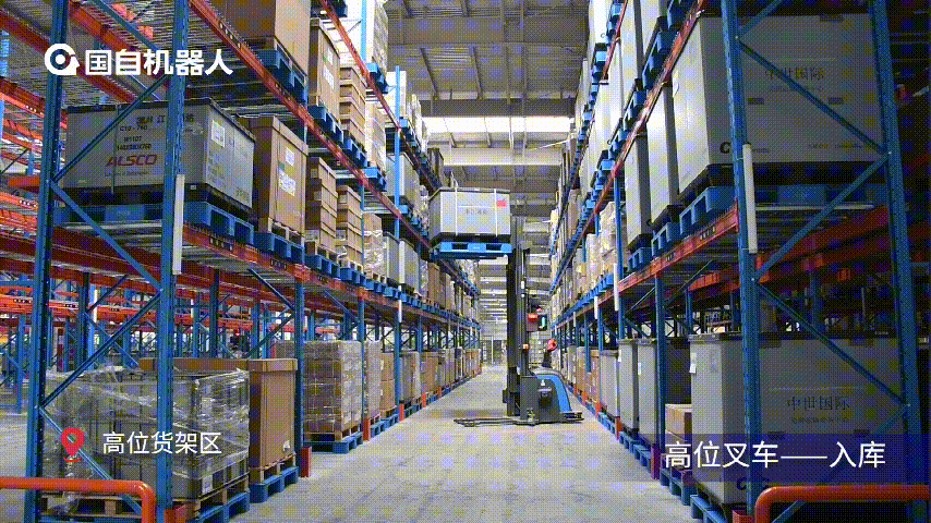 国自叉式堆垛AGV是仓储物流场景中最具通用性的AGV车型之一,可同时实现搬运和堆垛功能。在本项目中,国自叉式堆垛AGV在高位货架区实现与6米货架高精度对接,完成多层货架物料上货与出库搬运需求,极大提升仓库空间利用率,同比提升仓库库容约70%。
