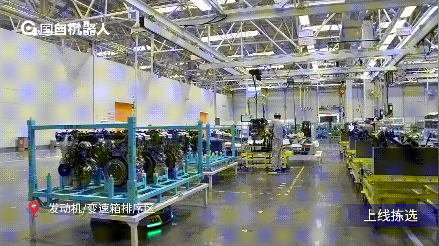 高位货架区,质检合格的零部件由叉式堆垛AGV执行入库上架任务,搬运至高位货架区进行存储,出库任务由叉式堆垛AGV和潜伏顶升式AGV协同完成。在发动机/变速箱排序区,由潜伏顶升式AGV实现发动机和变速箱料架上线拣选、余料回库、空托搬运,该解决方案上线后,有效提升仓储物流效率和汽车生产效率。